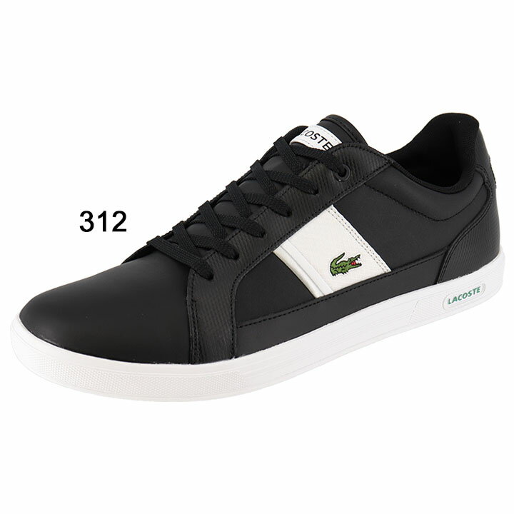 スニーカー メンズ コートスタイル シューズ ラコステ LACOSTE ヨーロッパ EUROPA 0721 1/レザー ローカット 男性 25.5-28cm スポーティ カジュアル シンプル わに ワニ 刺繍ロゴ 靴 くつ 黒 ブラック 白 ホワイト/SM00081
