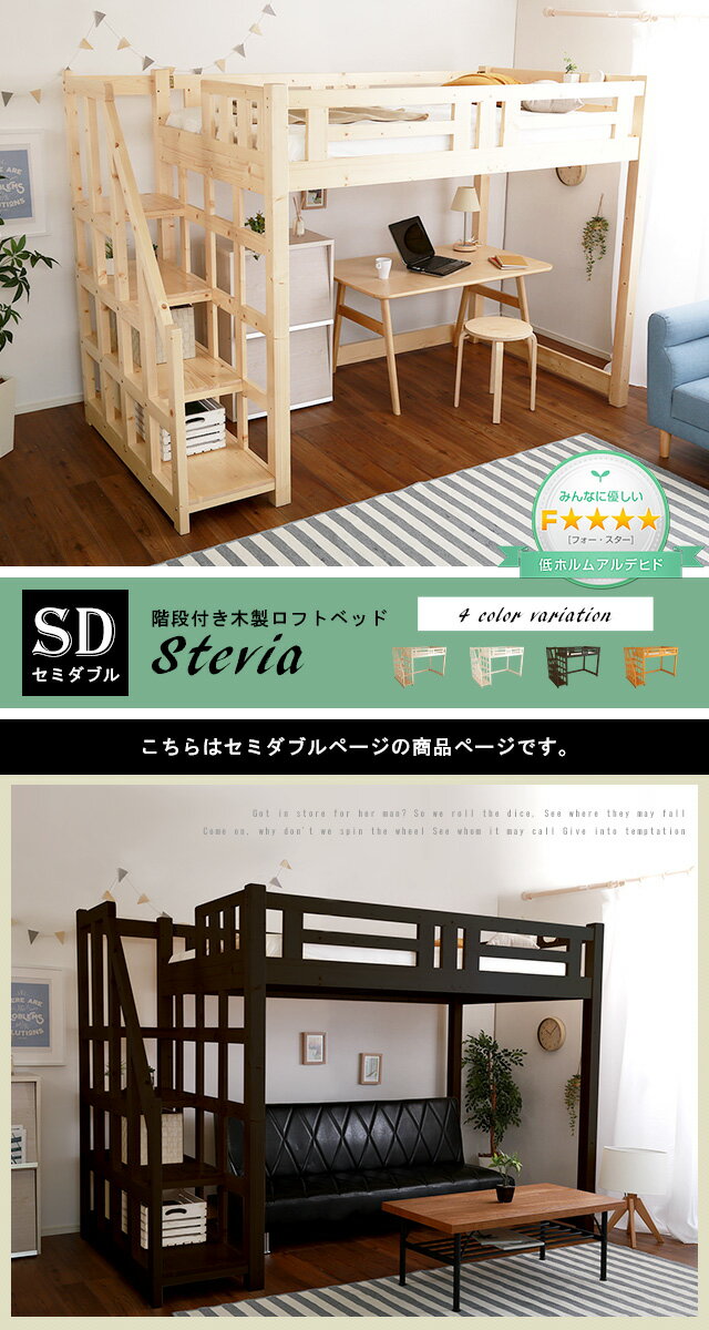【ポイント5.5倍】階段付き 木製ロフトベッド セミダブル[L]【代引不可】 [03]