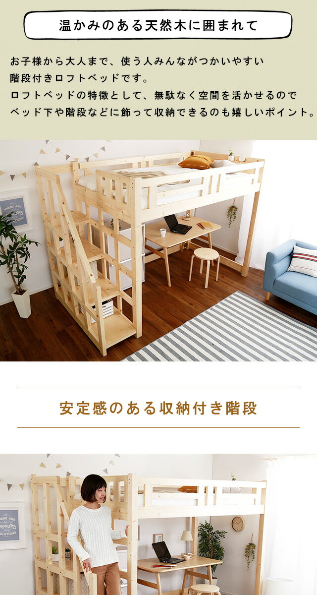 【ポイント5.5倍】階段付き木製ロフトベッド(シングル) Stevia-ステビア- ロフトベッド 天然木 階段付き すのこベッド すのこ 木製ベッド 子供 キッズ 木製 シングル【代引不可】 [03]