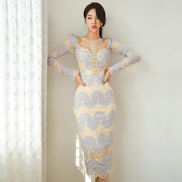 セール!【CityGirl】パーティードレス レディース ワンピ レースワンピース ワンピース ミモレ丈ワンピース 長袖 ミモレ丈 お呼ばれ デート 上品 大人 結婚式 エレガント 同窓会 アラモード Aライン着痩せ フェミニン 優雅 二次会 お出かけ きれいめ ドレス