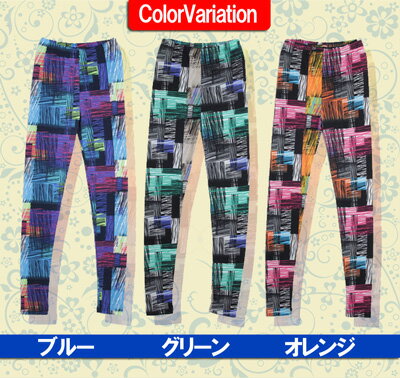 10分丈らくがきクレヨン プリントレギンス 色鉛筆かクレヨンの手書きで描いた落書きのような可愛い柄です。