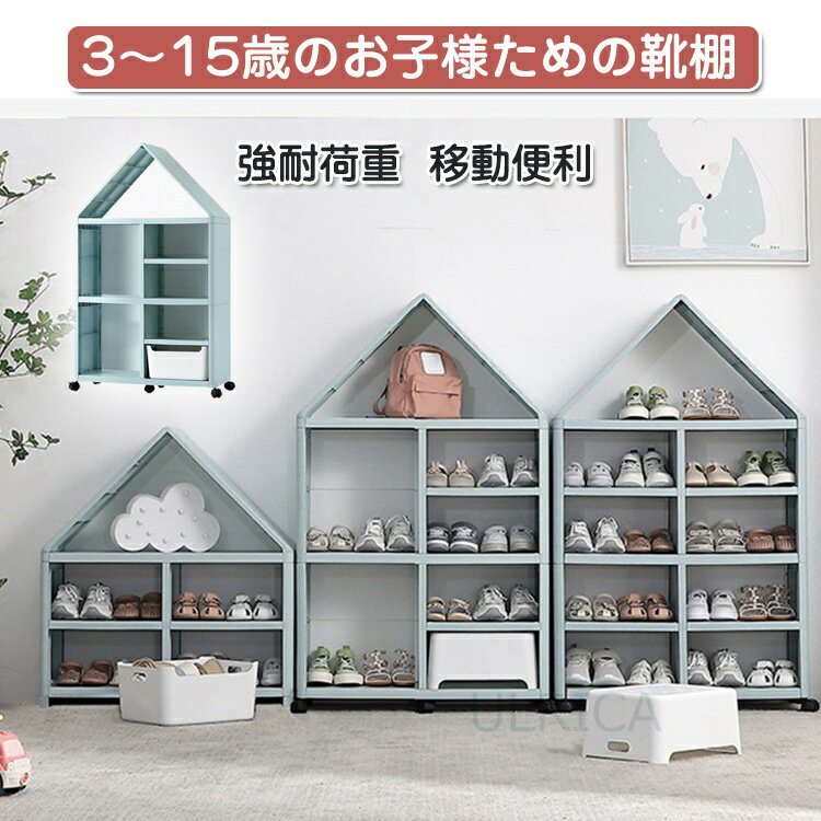 キッズ用 子供用 男の子 女の子 5段 シューズラック 靴棚 屋根型 可愛い トレー&椅子 キャスター付き 移動便利 大容量 リビング 玄関 おもちゃ収納 子供部屋LTY5-AL98
