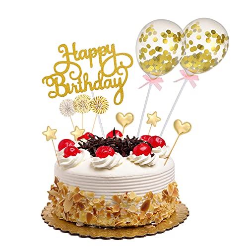 Yorkereynom ケーキトッパー 17点セット 誕生日ケーキ飾り ケーキ挿入カード ケーキデコレーション 豪華セット HAPPY BIRTHDAY 星 ハート ペーパーファン 風船 お誕生日 記念写真 写真撮影 ...
