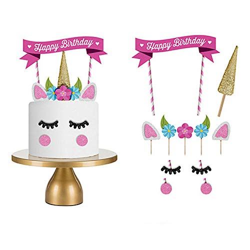 ピンク ユニコーン ケーキデコレーション ケーキトッパー Limpomme 配置メモ付き Happy Birthday 誕生日 バースデー ケーキ お誕生日 子供用 キッズ 装飾品 飾り ケーキ 手作りケーキ ケーキ飾り