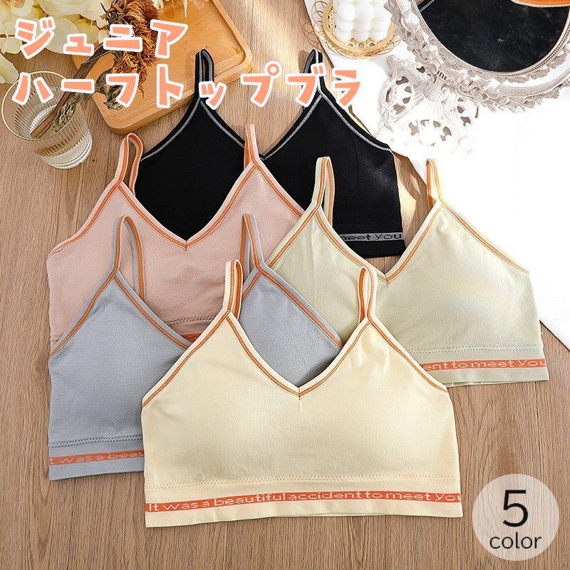 送料無料 ハーフトップ スポーツブラ 子供用 ジュニア 女の子 下着 インナー ブラジャー スポブラ かぶりタイプ カップ入り ロゴ おしゃれ かわいい ステッチ ダンス 体育 女児 ガールズ ピンク ブラック ブルー グリーン イエロー 黒 緑 黄色