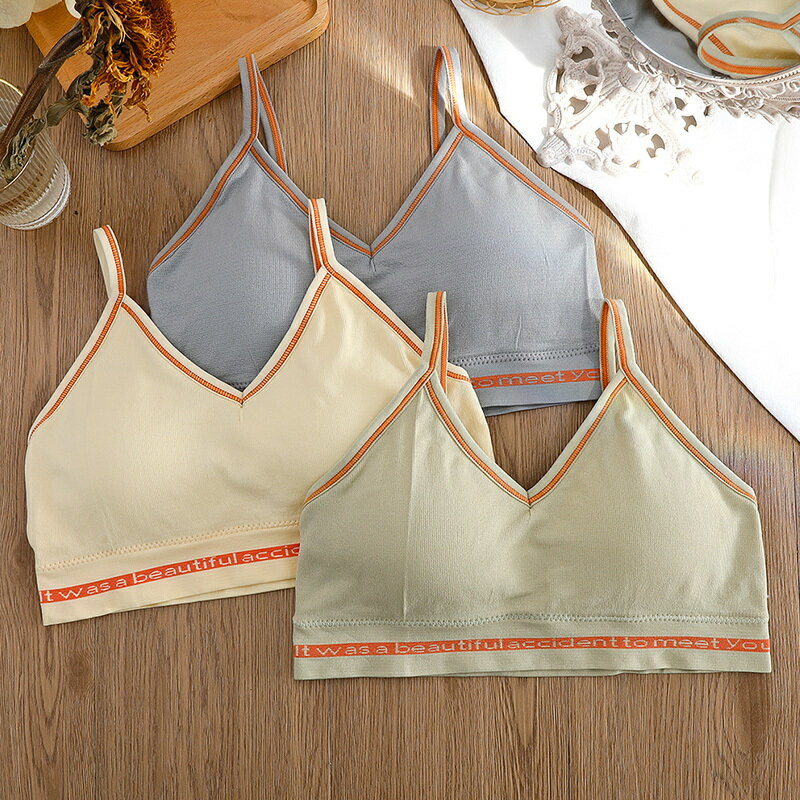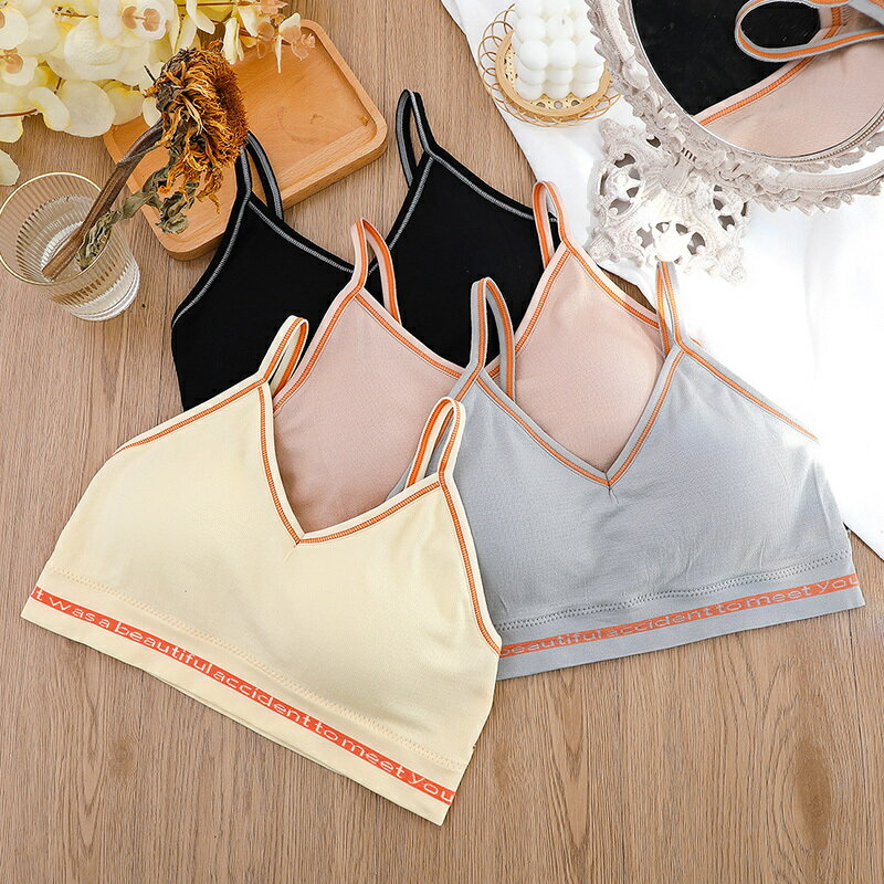 透明ストラッププレゼント!チューブトップ スポーツブラ パット付き 女の子 子供服 キッズ 無地 ロゴテープ ブルー/ブラック/ピンク/イエロー/オレンジ/パープル/グレー/ホワイト/レッド S/M ジュニア 小学生 中学生 ダンス衣装 ヒップホップ 見せブラ インナー