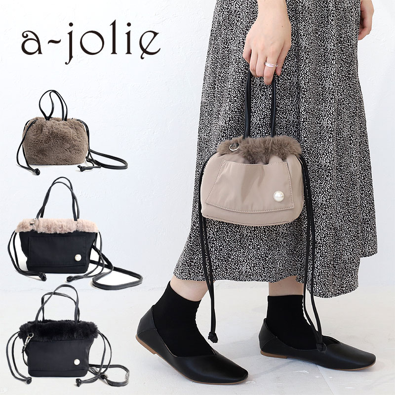 【最大12倍!9/11(日)2:00までエントリー&Rカード】アジョリー バック トートバッグ a-jolie 3WAYトート リバーシブル ショルダー 大人 ミニトート 巾着バッグ ポシェット ファーバッグ レディース aj-558