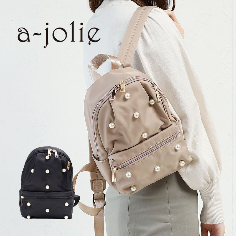 【最大12倍!9/11(日)2:00までエントリー&Rカード】アジョリー リュック バックパック デイパック リュックサック バッグ ポリエステル 大人 通勤 a-jolie レディース aj-566 パール